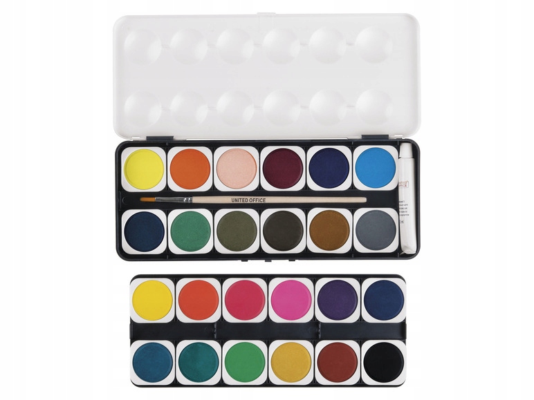 UNITED OFFICE FARBY WODNE AKWARELOWE ZESTAW DLA DZIECI 24 kolory + pędzelek