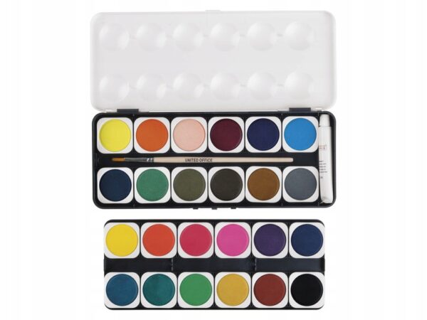 UNITED OFFICE FARBY WODNE AKWARELOWE ZESTAW DLA DZIECI 24 kolory + pędzelek