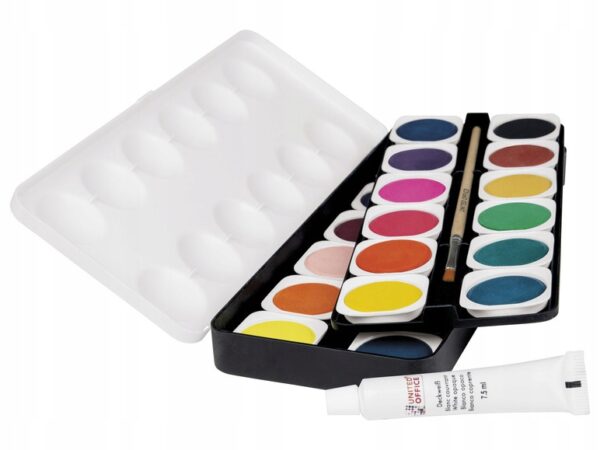Akwarele UNITED OFFICE® to świetny zestaw dla młodych artystów, oferuje 24 jasne kolory, w tym nieprzezroczystą biel, co pozwala na szeroką gamę możliwości. Dołączony drewniany pędzel sprawia, że malowanie staje się prostsze i bardziej komfortowe.