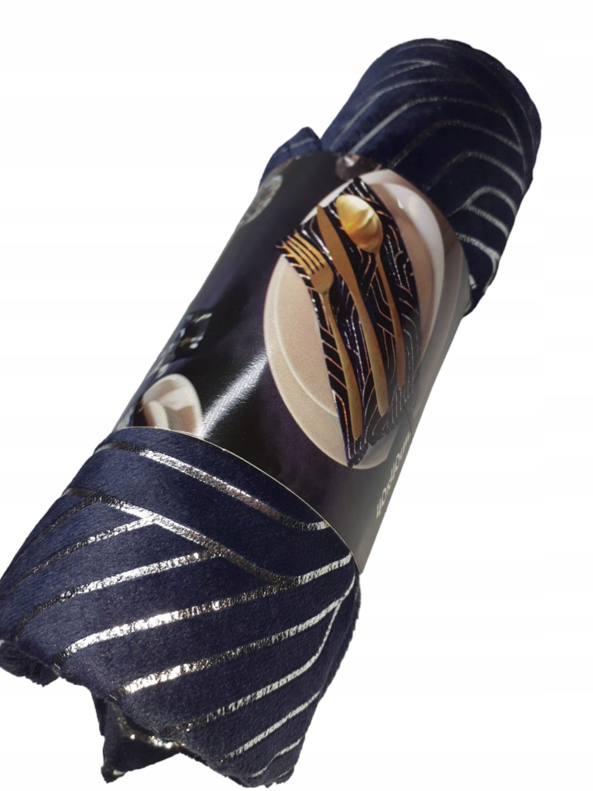 Kolor: granatowy ze wzorem srebrnym.
