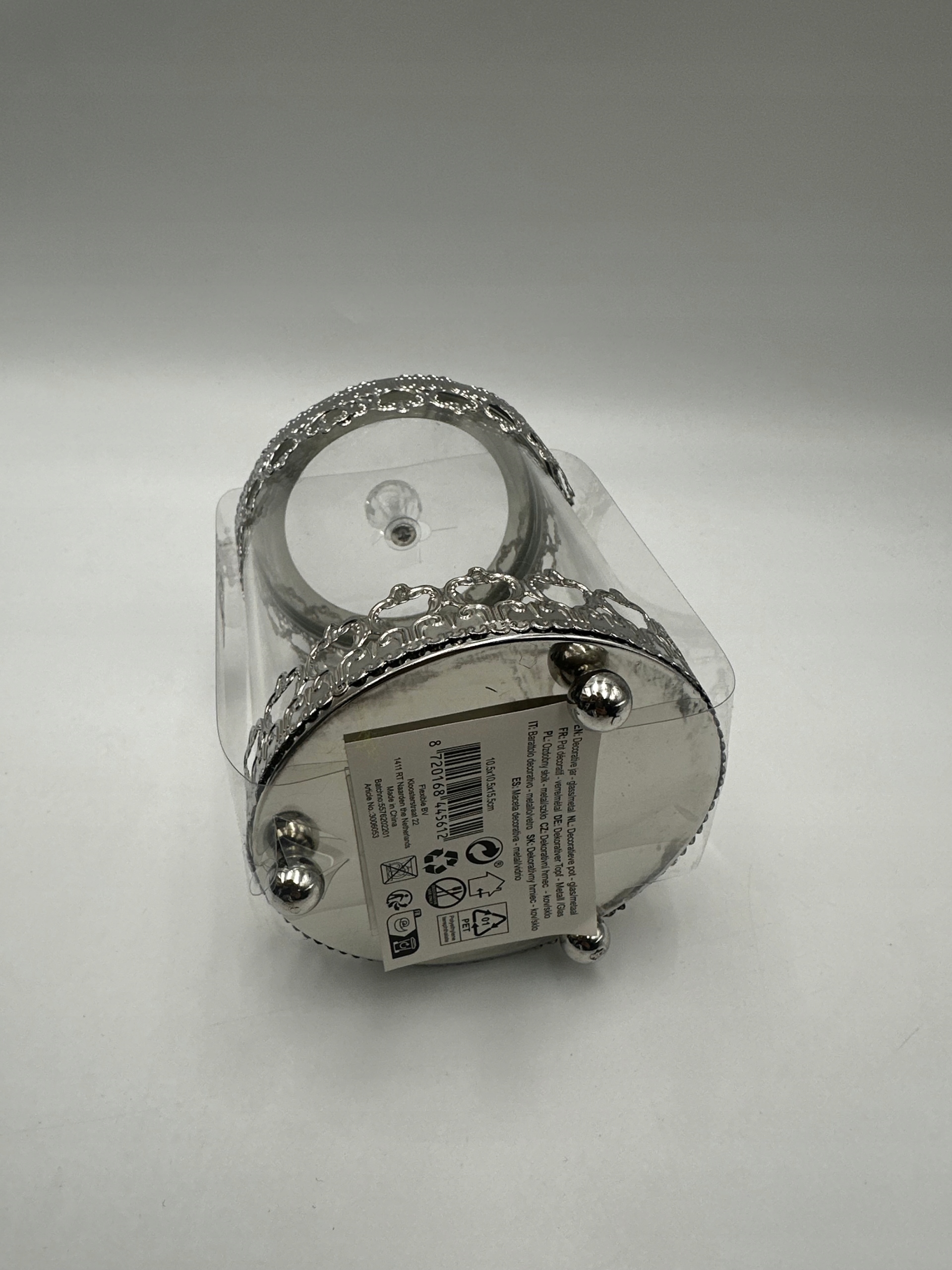 - Produkt ozdobiony dekoracyjną metalową krawędzią