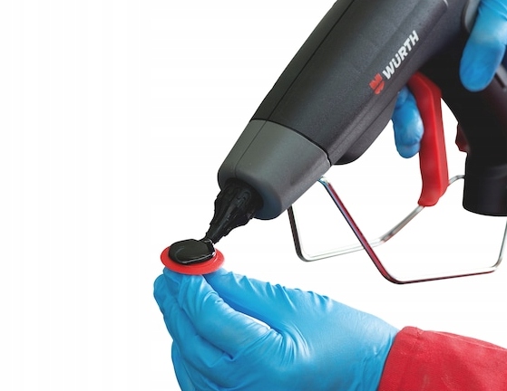 - Nałożyć klej topliwy na środek odpowiedniego elementu pośredniczącego.