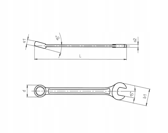 - Kształt: Strona oczkowa nachylona pod kątem 15°, przesunięcie głowicy 15°