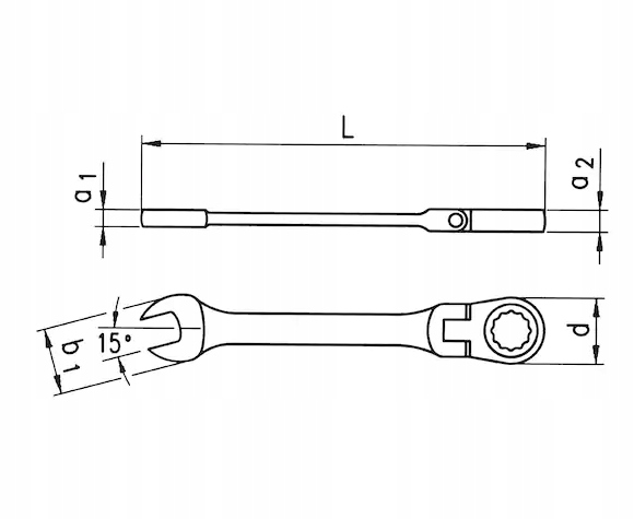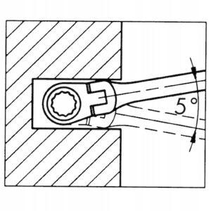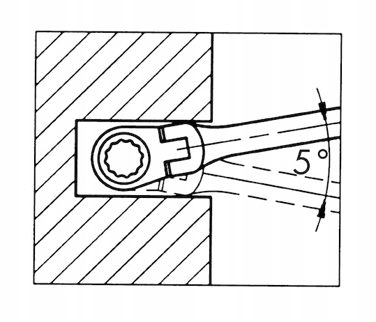 Do luzowania śrub służy strona otwarta, do dokręcania śrub służy mechanizm z grzechotką po stronie oczkowej