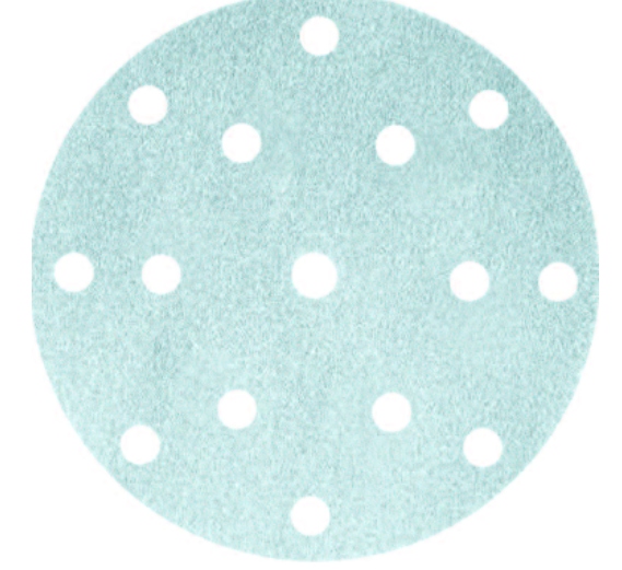 Krążki szlifierskie na podłożu z papieru wzmacnianego lateksem. Wyjątkowo elastyczne. Materiał ścierny – wzmacniane ziarno korundowe. Nasyp półotwarty. Średnica krążka 150mm. Wersja 6-otworowa i 15-otworowa.