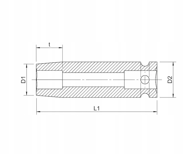 - Średnica zewnętrzna klucza nasadowego (D1): 25 mm