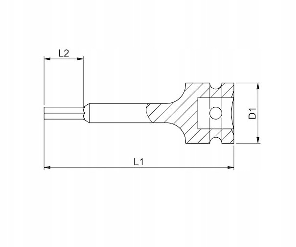 - Średnica zewnętrzna klucza nasadowego (D1): 25 mm