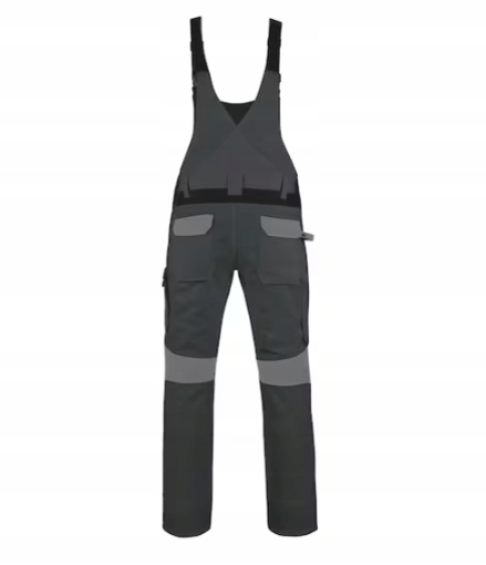 Practical dungarees in a variety of attractive colours with functional details, such as plastic buttons and zips, an ID card holder clip and a variety of pockets