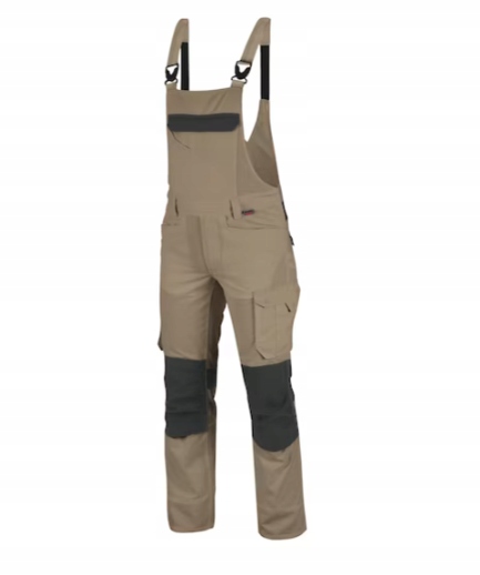 Practical dungarees in a variety of attractive colours with functional details, such as plastic buttons and zips, an ID card holder clip and a variety of pockets
