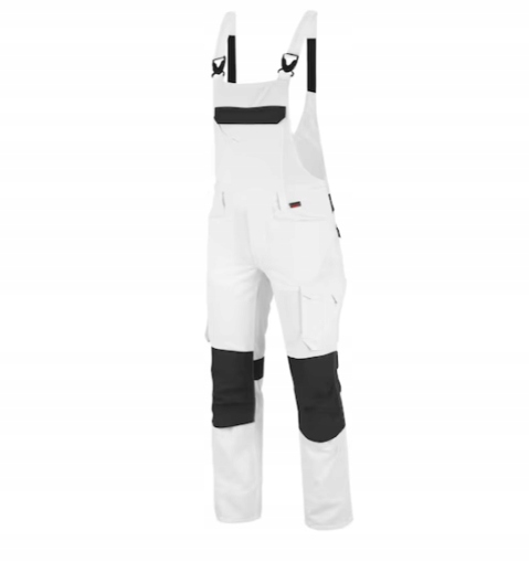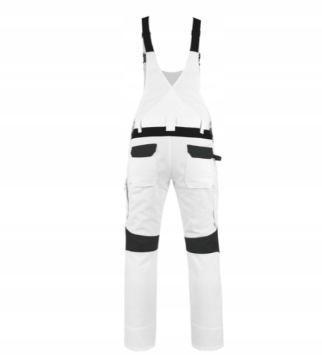 Practical dungarees in a variety of attractive colours with functional details, such as plastic buttons and zips, an ID card holder clip and a variety of pockets