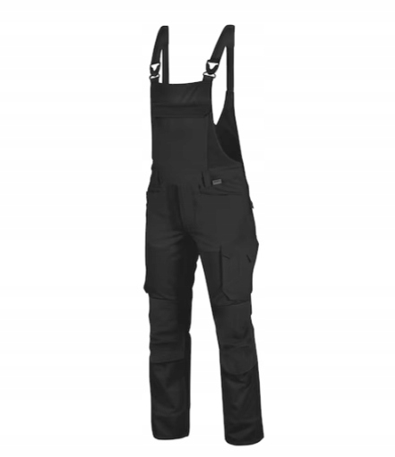 Practical dungarees in a variety of attractive colours with functional details, such as plastic buttons and zips, an ID card holder clip and a variety of pockets