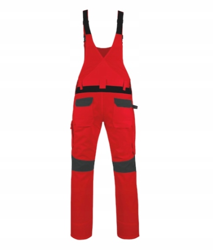 Practical dungarees in a variety of attractive colours with functional details, such as plastic buttons and zips, an ID card holder clip and a variety of pockets