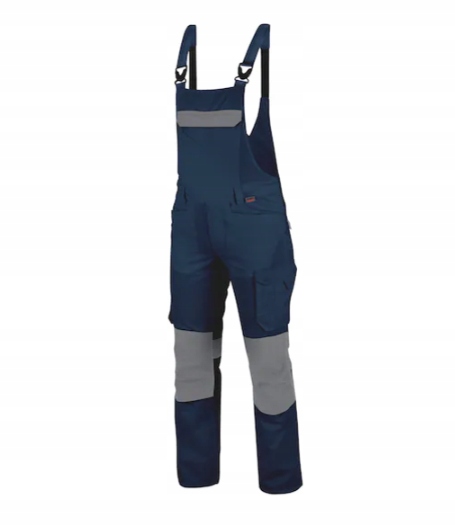 Practical dungarees in a variety of attractive colours with functional details, such as plastic buttons and zips, an ID card holder clip and a variety of pockets