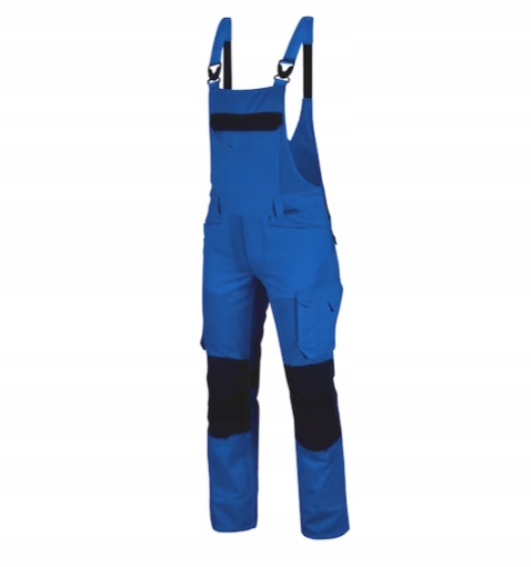 Practical dungarees in a variety of attractive colours with functional details, such as plastic buttons and zips, an ID card holder clip and a variety of pockets