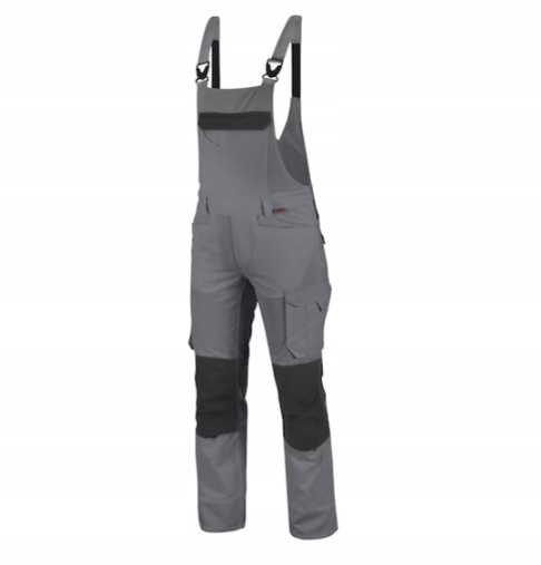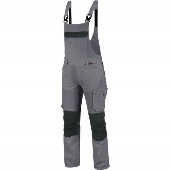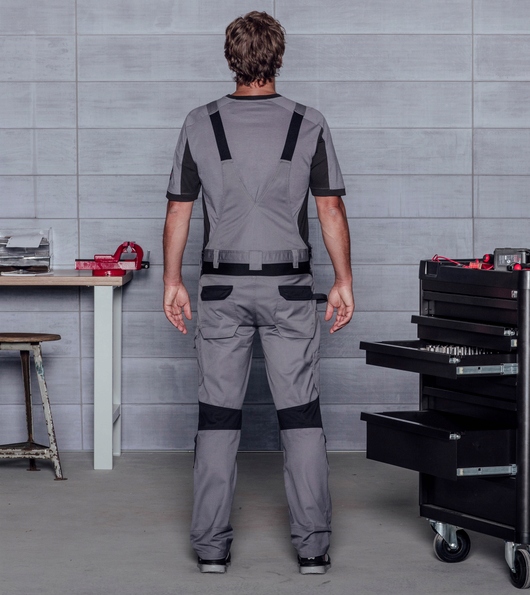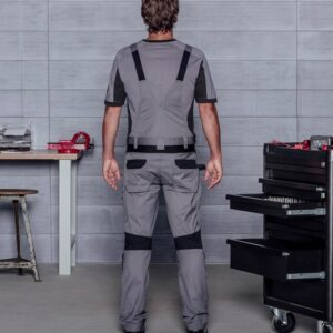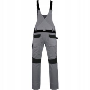 Practical dungarees in a variety of attractive colours with functional details, such as plastic buttons and zips, an ID card holder clip and a variety of pockets