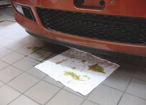 Umieścić ściereczkę wchłaniającą olej bezpośrednio na obszarze chronionym przed kapiącym olejem. Ponadto za pomocą ściereczki wchłaniającej olej można również absorbować istniejące plamy oleju. W tym celu wystarczy położyć ściereczkę na plamie oleju.