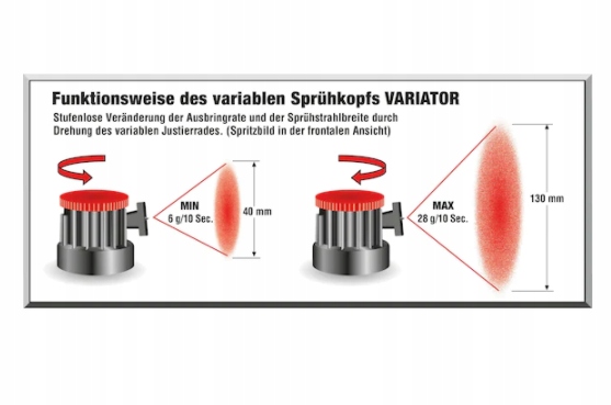 Wielkopowierzchniowe oraz drobne naprawy mogą być przeprowadzane szybko i niezawodnie dzięki zmiennej głowicy natryskowej.