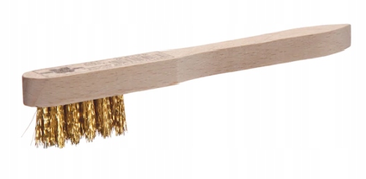 Drewniany uchwyt oraz zaciskane druty mosiężne do czyszczenia elektrod i styków świec zapłonowych.