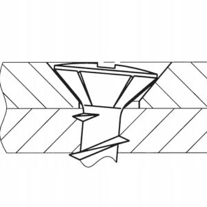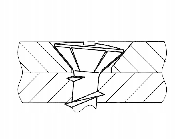Specjalny łeb stożkowy płaski o średnicy Ø 7,2 mm lekko uniesiony i z żebrami pod łbem, aby uniknąć uszkodzenia powierzchni.