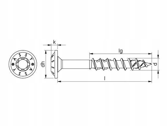 Wkręt z gwintem częściowym i dużym łbem do okuć płaskich, do połączeń drewno-drewno w konstrukcjach nośnych wymagających ściągania łączonych elementów, do zastosowań w pomieszczeniach suchych i mokrych