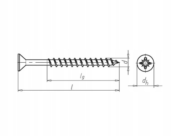 - Typ łba: Łeb stożkowy płaski 90 stopni
