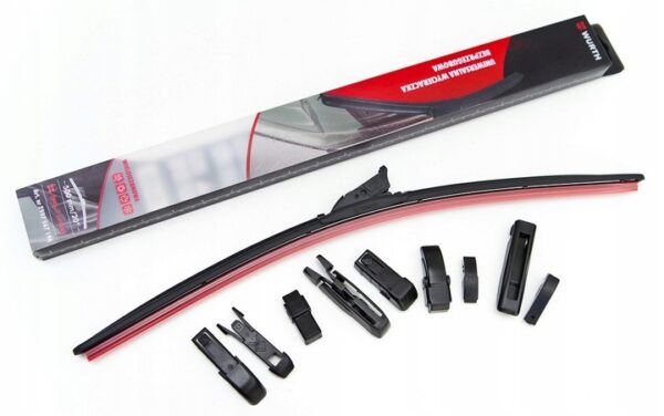 Płaskie uniwersalne wycieraczki bezprzegubowe – typu Aerotwin/ Linia Premium. Wszystkie rodzaje mają zamontowany adapter uniwersalny typu U. W opakowaniu znajduje się 9 szt. adapterów OE.