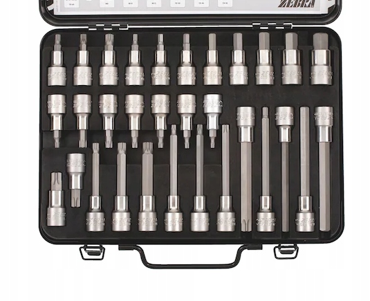 - Kompletny asortyment 1/2 cala z krótkimi i długimi nasadkami do kluczy nasadowych sześciokątnych, TX i potrójnych kwadratowych