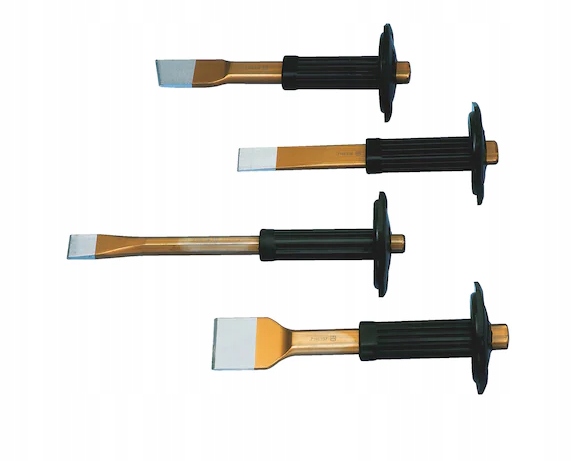 4 elem. W zestawie po 1 sztuce: przecinak dla elektryków, przecinak do karoserii, przecinak kamieniarski, przecinak do spoin.